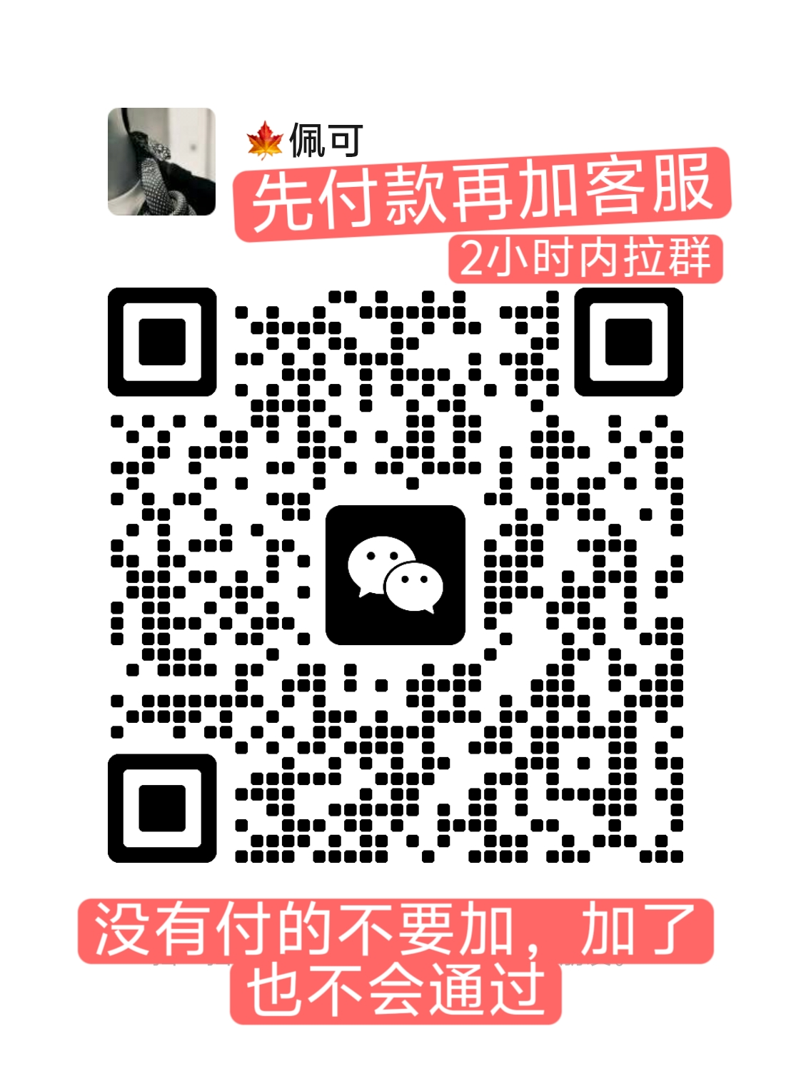 先支付,再加客服!